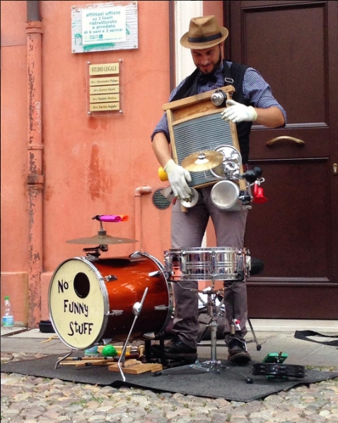 No Funny Stuff, un americano due molisani e un italiano armati di bizzarri strumenti fatti in casa con contenitori di fortuna, manici di scopa, seghe, assi per lavare i panni, pentole, lattine, innaffiatoi da giardino e quant’altro .
